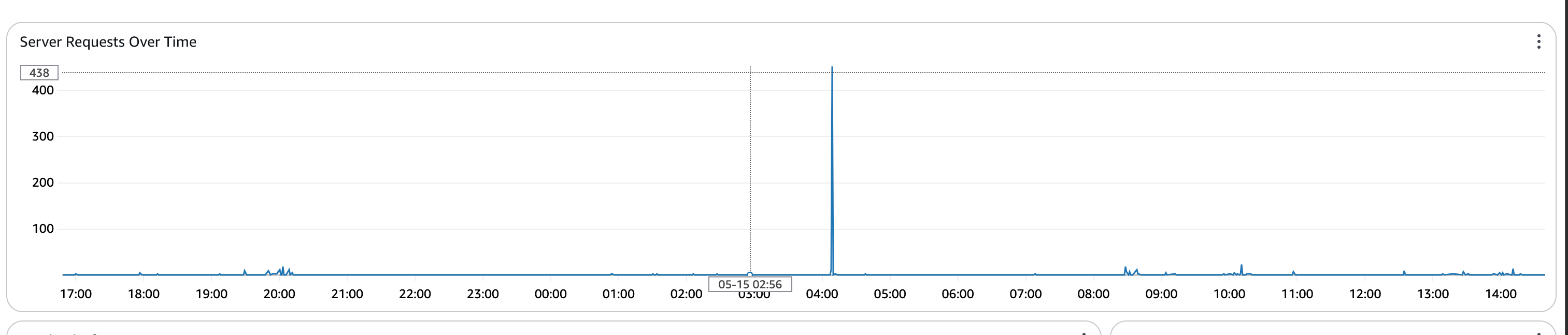 It didn’t stop there though, another malicious actor began hitting the server hundreds of times per minute. The screenshot below shows a sharp spike in number of requests at 4am.